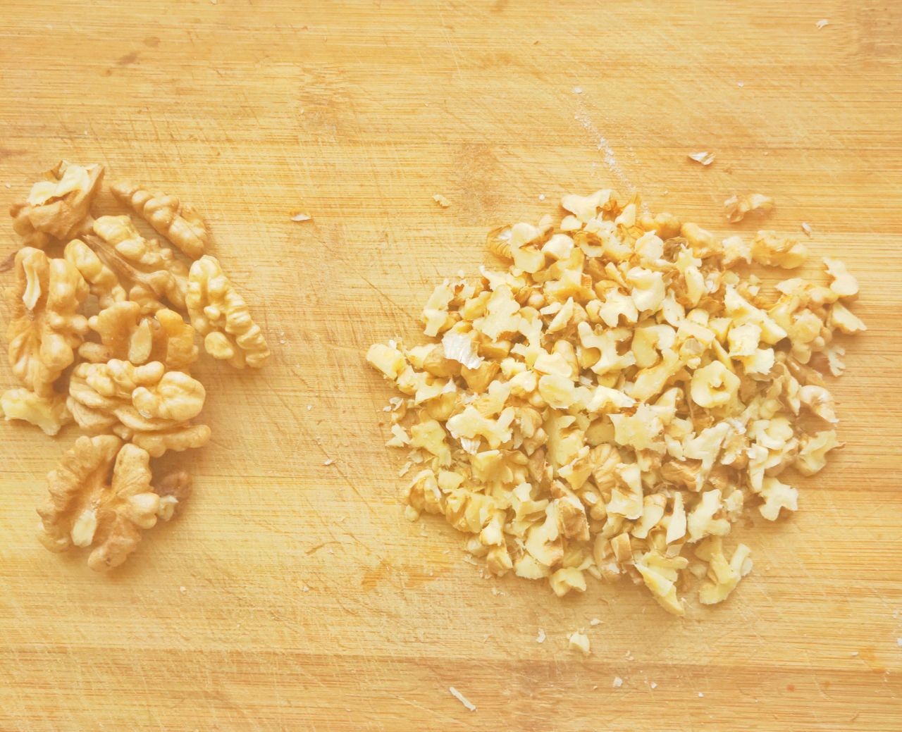 3.将烤好的核桃仁用刀切成小块;