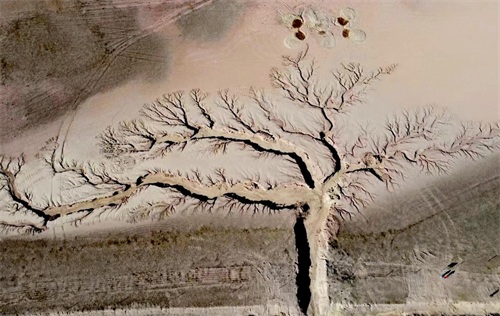 这棵“天空之树”是由潮汐作用在河滩上,天然形成的一种“潮沟”。好似地球的脉络一般,神奇的是,“天空之树”走近用肉眼是看不到的,只有乘坐飞机或者操纵无人机在其上空飞过时,才能一瞥它美丽的容颜。