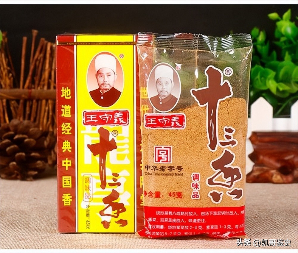 黄色的长方形纸盒上面,特殊设计的“十三香”三个字格外醒目,而上面王守义戴白帽子的图标更是成了十三香的独有。