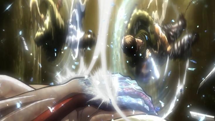 能力二,可以自由掌控普通人变身为无垢巨人的时间,玛利亚之墙夺还战中,让大量无垢巨人凭空出现,还可以通过吼叫命令这些注射了脊髓液的无垢巨人。