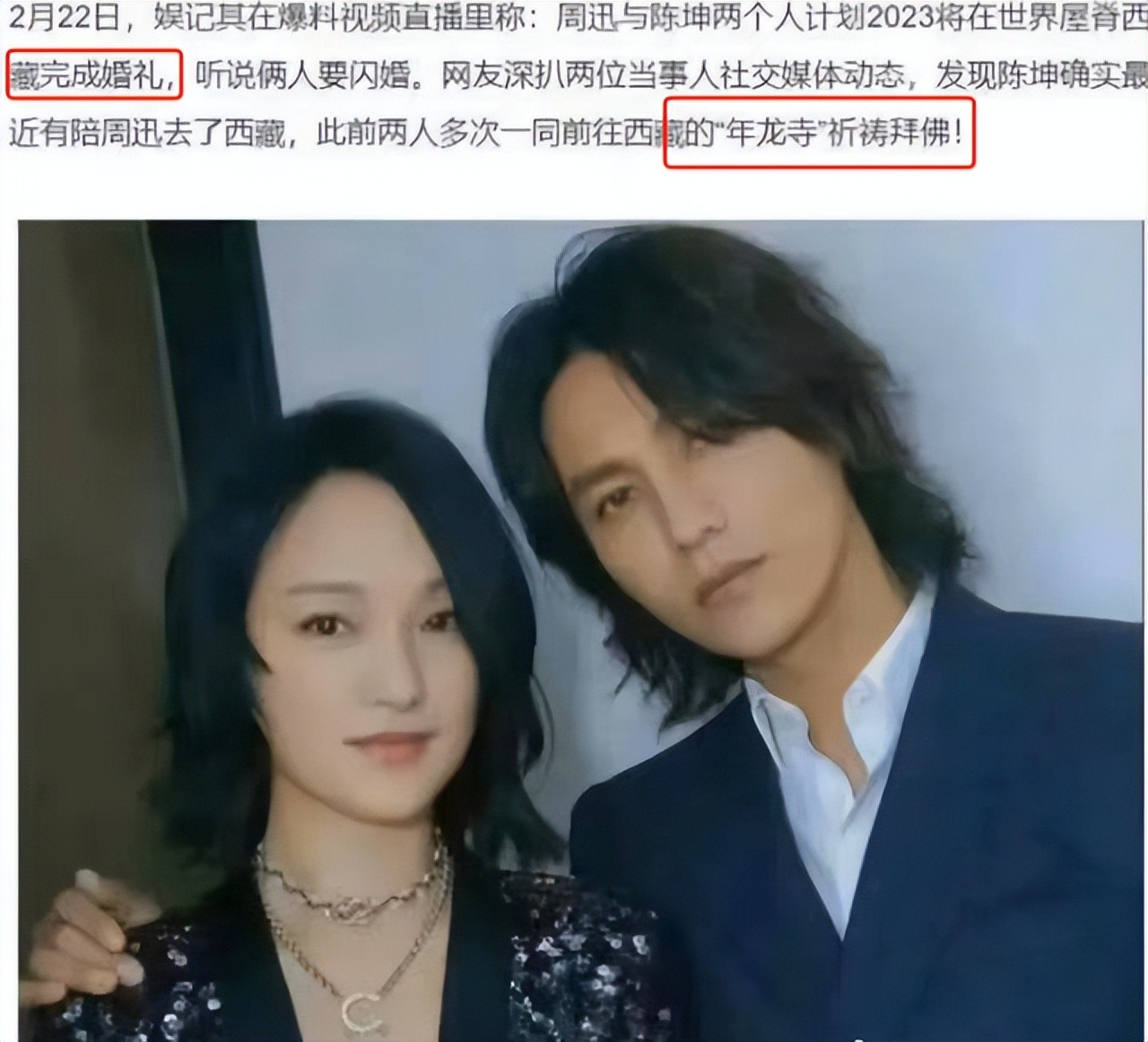 早在2020年底周迅对外公开离婚的消息时,娱记朱叔就爆料陈坤与周迅将在西藏结婚,此次他再度出面爆料,不知道是又有其他的证据还是旧事新提。