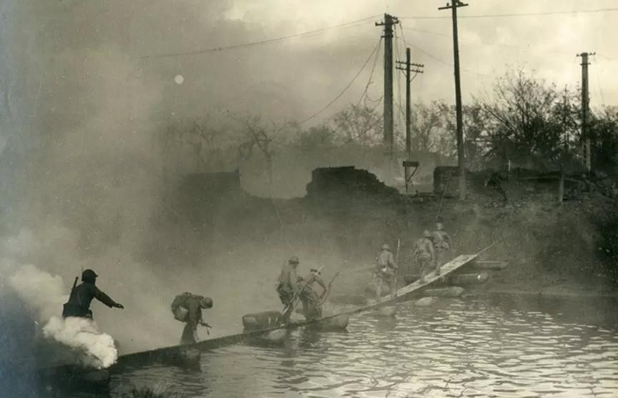 日军在炮火掩护下强行渡河