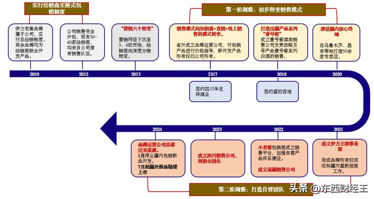 发展历程: 伊力特早期依靠经销商买断式包销模式快速发展,但随着白酒行业发展,公司逐渐意识到自身营销板块的缺失,开始进行营销模式改革,逐步建立起自有营销体系。
