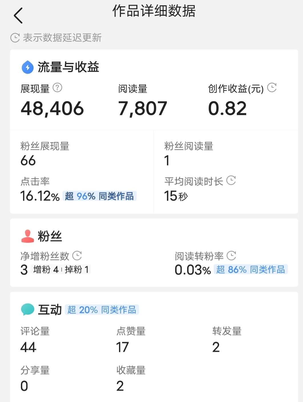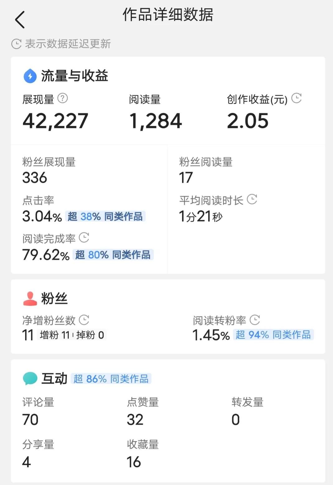 个人感觉这个文章收益可以了,1200的阅读量是可以达到2块多了,有点出乎我的意料。