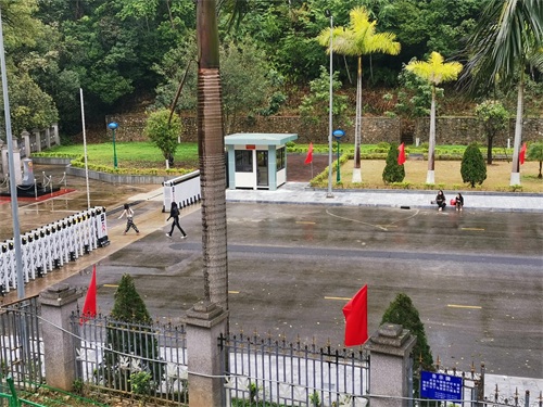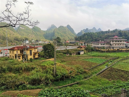 龙邦口岸不仅仅是离主干高速公路近容易到达,而且特别亲民,游客可以在国门门前走动拍照。边境的中国护龙村与越南的村庄紧紧相连。我国的护龙村在山坡上,山下就是中国的国门、越南的国门和茶岭。游客可以走进护龙村,清楚地看到我国国门的背面和越南的国门和茶岭。今天我们看到一些越南人进出中越两国国门,到中国边境的村庄做小生意或买些中国日化品。还看到了一个越南老汉在砍收甘蔗。我国境内的护龙村有很多店铺在售卖越南产品,还有些店铺正在装修建设中,口岸建设如火如荼。