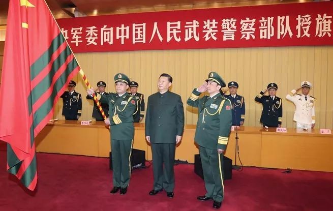 中央军委向武警部队授旗仪式10日在北京八一大楼举行。中共中央总书记、国家主席、中央军委主席习近平向武警部队授旗并致训词。