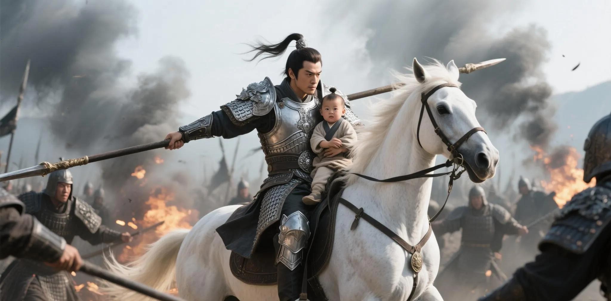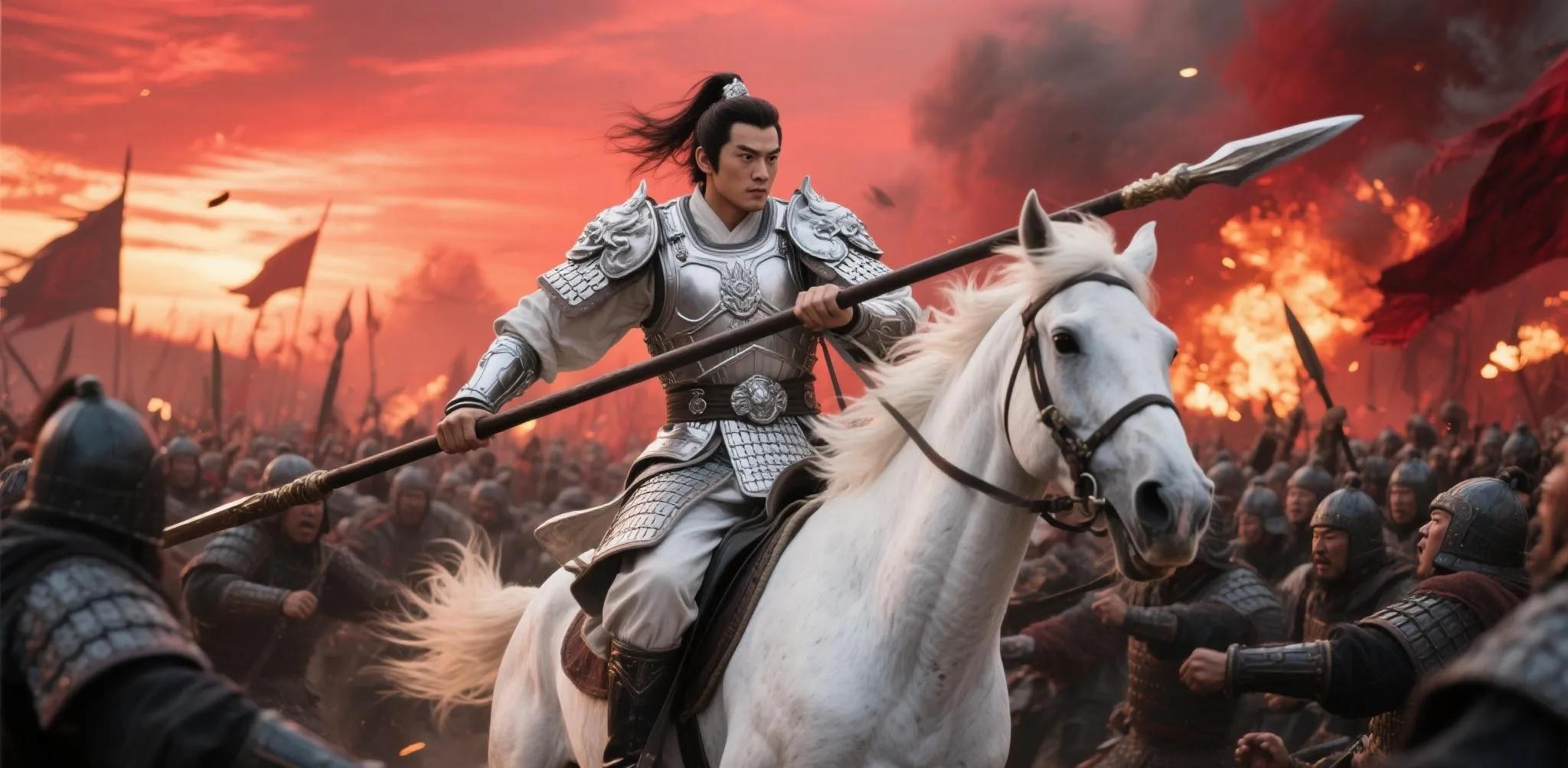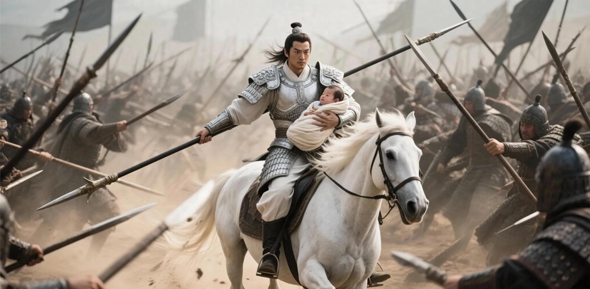 《三国演义》以“砍倒大旗两面,夺槊三条,斩杀曹营名将五十余员”的简练笔触,勾勒出令人胆寒的战场细节。赵云的表现堪称古代特种作战的典范: