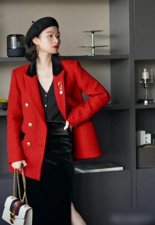 因此,适合红色的妹子们选择深红或者酒红颜色进行搭配,这些颜色不仅关乎着喜庆运势,更是优雅魅力气质。