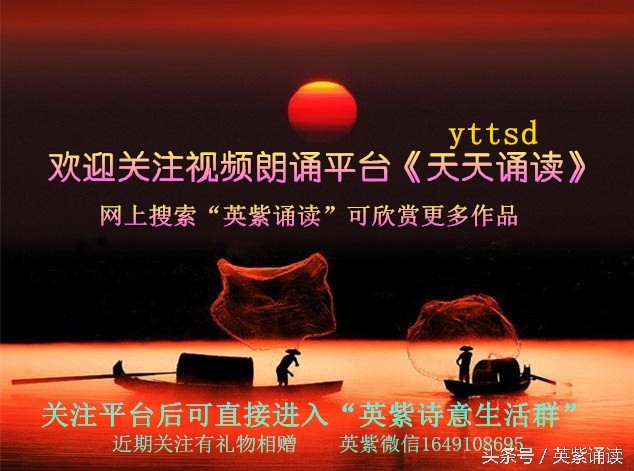 【天天诵读】视频朗诵平台,每日原创优雅分享,试听盛宴,欢迎在网上搜索“英紫诵读”或在微信里搜索《天天诵读》公众号。(ccccccc/umfegkh1zx5 关注平台后可直接进入“英紫诗意生活群” )