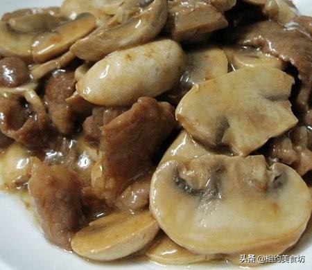具体做法步骤:1、猪肉切片,用适量的盐、油、生抽、老抽腌制10分钟;2、蘑菇切片、姜切片;3、下油热锅,倒入蘑菇,翻炒把水分逼出来炒干装起来备用;4、下油把姜片爆香,倒入猪肉片,快速滑开至变色,加入蘑菇,继续翻炒1分钟,倒入一点点鲍汁调味,生粉兑点水勾个薄芡即可。