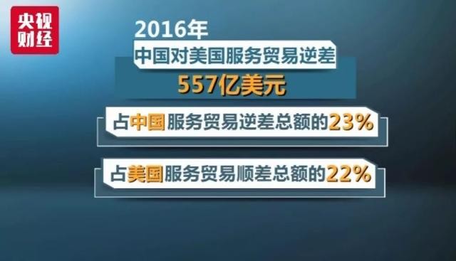 近年来,中国对美服务贸易逆差快速增长。据中方统计,2016年,中国对美国服务贸易逆差高达557亿美元,占中国服务贸易逆差总额的23%,占美国服务贸易顺差总额的22%。