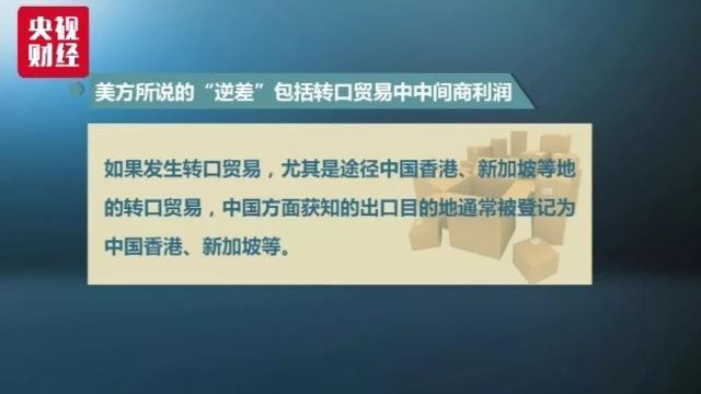 在美方所说的“逆差”中,还包括了转口贸易中中间商的利润。在中美货物进出口统计中,均将原产地作为进口统计的依据,把出口所指的目的地作为出口统计的依据。