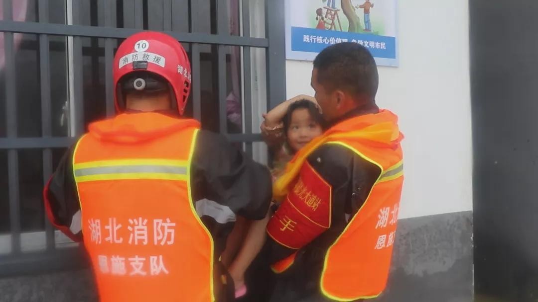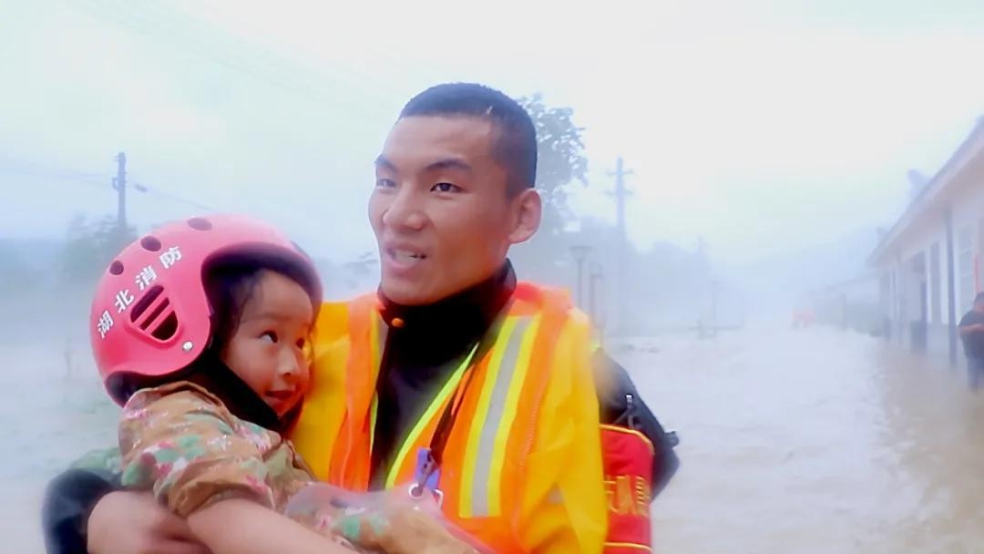 那天救援行动中,我的队友张士伦也在其中,就是画面中的这个人。他怀里抱着的小女孩,我们叫她小欣怡,今年5岁。那天,刚刚救出一名瘫痪老人的张士伦,在一户民房客厅的桌子上,发现了蜷缩一团的小欣怡,当时屋里的积水已经近1米深。张士伦冲着小欣怡喊:“小家伙,不要怕,叔叔这就把你抱出去。”“我不出去,出去头发要被淋湿了。”小欣怡的话把正准备抱她出去的张士伦给逗乐了。“放心,叔叔不会让你淋湿的。”说着,张士伦解下自己的头盔,轻轻地为她戴上,抱着她坚定地踏入洪流之中,小姑娘得救了。如大家所见,一个眼中满是疼爱,一个眼中满是崇拜,这个场景在当天刷爆了大家的朋友圈,也构成了冰冷的洪水中最温暖的画面。