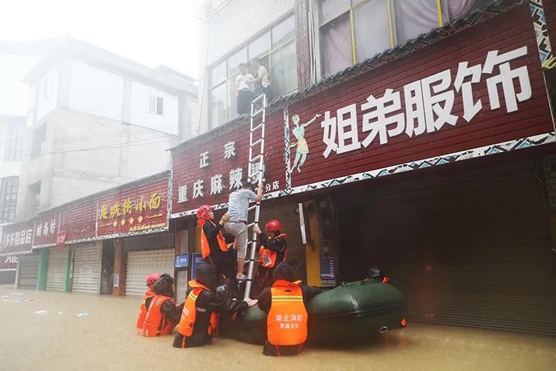 7月17日,天降暴雨,大家刚准备过早,这个声音再次响起。阔播里重复道咸丰县忠堡镇石门坎村发生内涝,有人员被困,急需救援。我们火速赶赴现场,目光所到之处,一片汪洋,水流湍急,早已分不清哪里是道路、哪里是庄家。经了解,虽然前期乡镇政府已经组织小区人员进行了有序撤离,但是仍有大量群众因洪水涨势太快,被困家中,初步估计,最少有五六十人,其中不乏行动不便的老人与小孩。