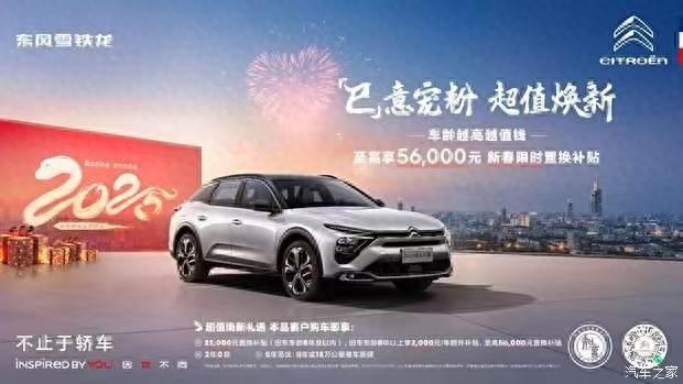 “车龄越高越值钱,至高享56000元新春限时置换补贴。”活动期间,东风雪铁龙、东风标致客户购买2024款凡尔赛C5 X即享:22000元置换补贴(旧车车龄8年及以内),旧车车龄8年以上享2000元/年额外补贴,至高享56000元置换补贴,还可享2年0息以及5年或15万公里整车质保。