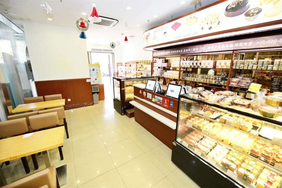 红宝石饼店位于商业区大厅的侧门,门店布局简约