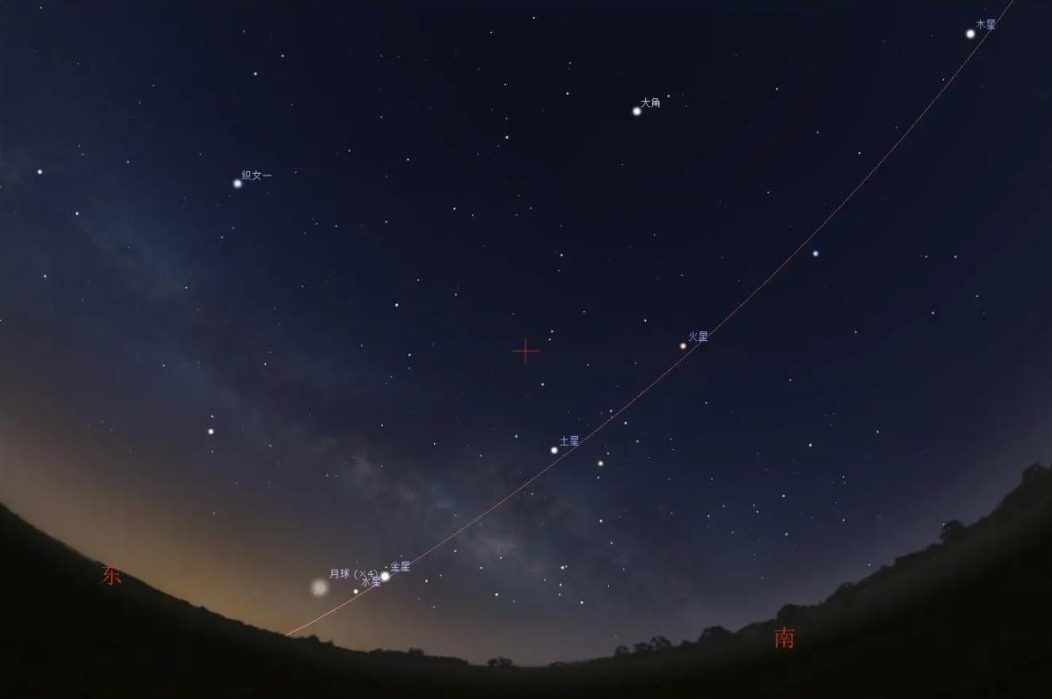 而这一次春季假期出现的“五星连珠”,则少了水星,取而代之的是月亮。所以,准确来说,其实在今年1月下旬我们看到的,是“四星连珠”,加上一颗从西向东逐日运动期间,会短暂与“四星连珠”组成“五星连珠”的月亮。