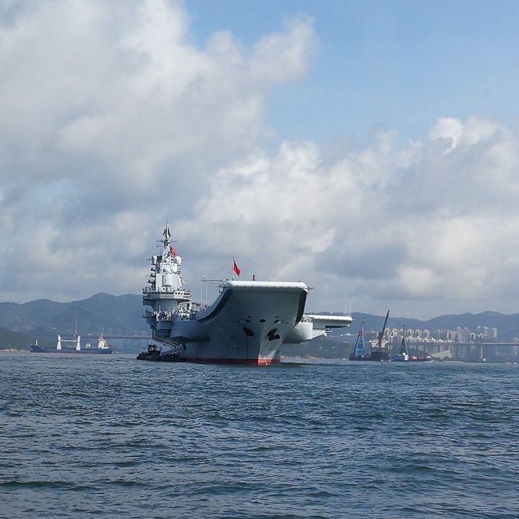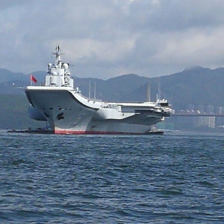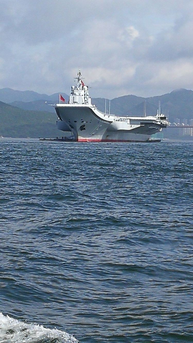 驳船经过近四十分钟航程,我们离辽宁舰很近了。