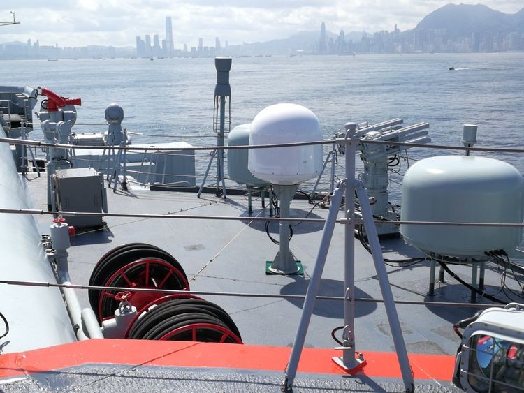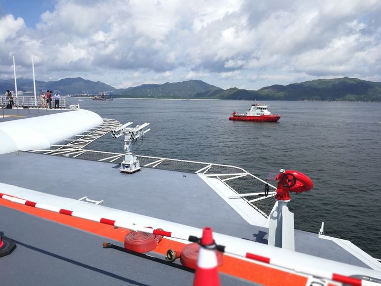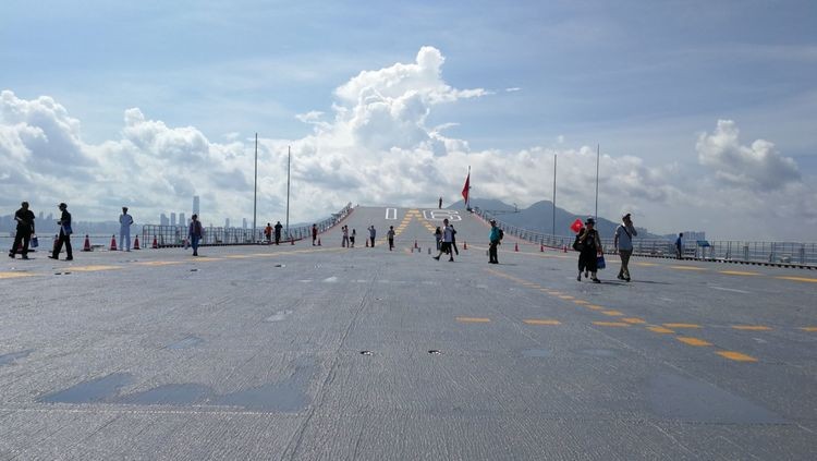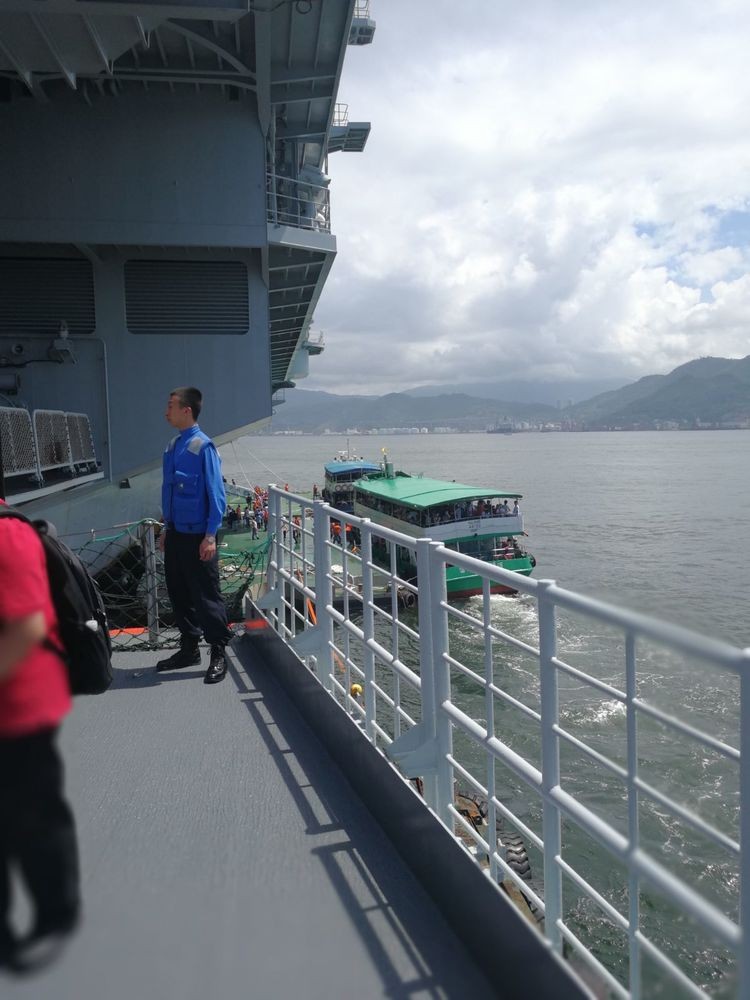 早晨我们来到香港十号公众码头,通过安检在码头等候搭乘接驳小轮前往辽宁舰参观。