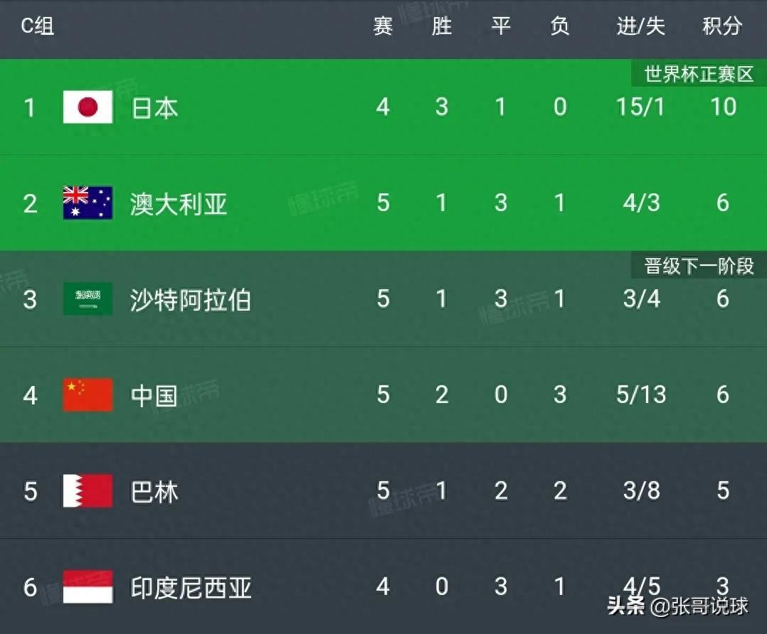 中国男足是本小组中除日本队之外攻击能力最强的球队,中国男足5场比赛打进5个球,澳大利亚5场比赛打进4个球,沙特5场比赛打进3个球,只是中国队失球太多了,第一场被日本队踢个0-7,C组中除了日本队和中国队之外,其他球队发挥集体低迷,尤其是沙特和澳大利亚,巴林队客场能赢澳大利亚,但主场输给了中国,第二名和第五名只相差一分,乱战之下国足才有出线的机会。