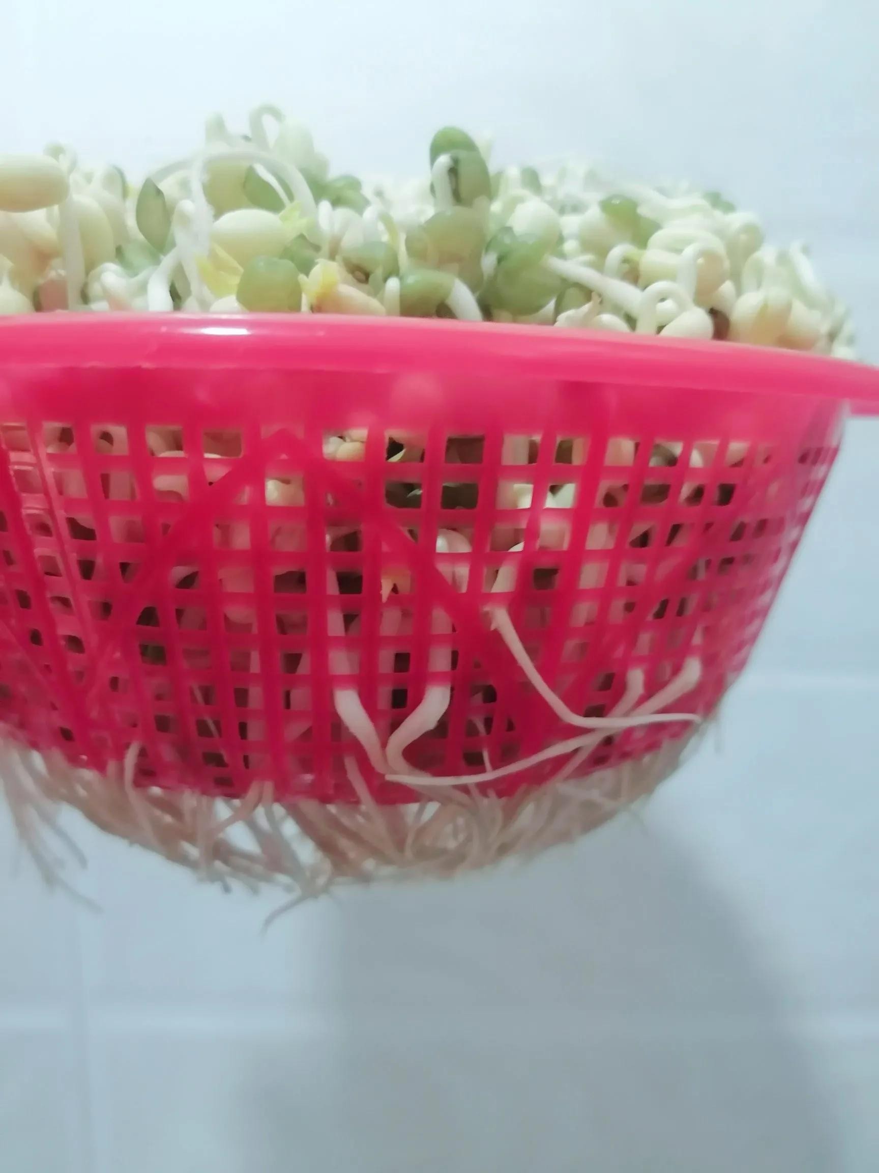 5⃣然后把透气容器放在一个可以控水的地方。每天早晚各淋水控水一次,不能偷懒哦,夏天1—2天绿豆芽就能发好。冬天可能会延迟两天。