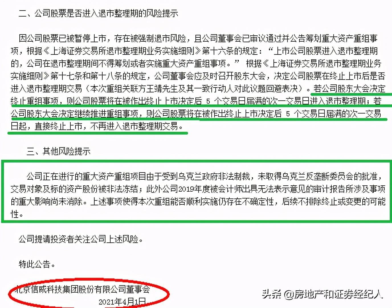认为信威会退市的主要是以下原因:乌克兰的总统制裁令就是王炸,直接把收购方案否决了,最终乌克兰决定国有化马达西奇。这样看的话,信威重组马达是失败的,信威退市铁定无疑。