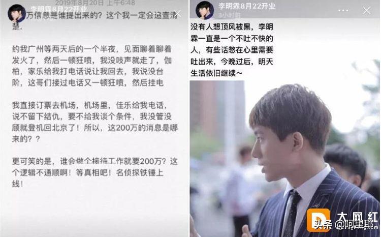 昨天上午李明霖发文澄清自己从未向辛巴提过200万这个事,因为当时辛巴与自己约在广州昨年,自己在等了两天后见面了,聊着聊着就发火了,然后一顿狂喷,伽柏他们打电话让回去,自己说没有台阶下,结果打电话又是一顿狂喷,自己直接坐飞机走了,当时还威胁说什么不留下就结仇了,200的事从来没有提过,这不可笑吗?谁做个接待工作就要200万啊,到底是谁说的这个一定会查清楚。
