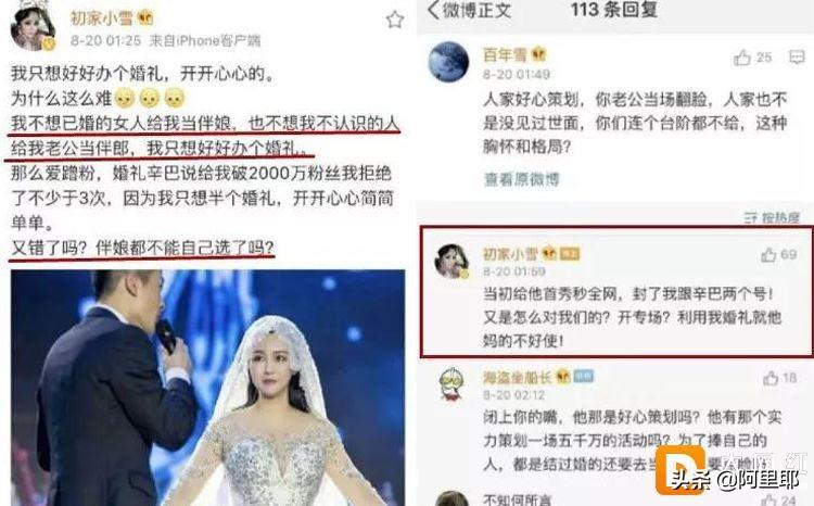 随后初瑞雪发文也回应李明霖表示:自己不想一个已婚的女人(韩安冉)当伴娘,不想让一个不认识的人(李宏毅)给辛巴做伴郎,只想好好的办个婚礼有错吗?同时初瑞雪又在评论中对怒喷李明霖,说道:利用我婚礼就TMD不好使。