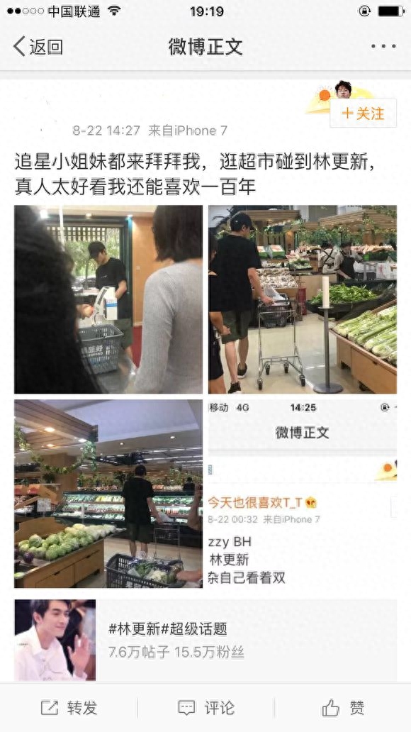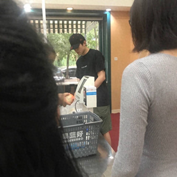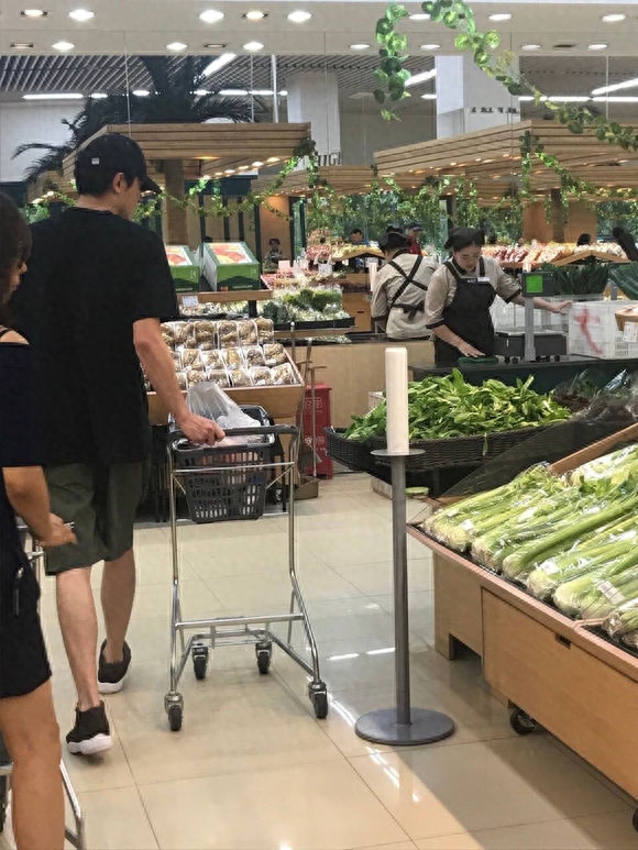 17年8月22日王丽坤当天回北京,林更新出没在北京望京的果蔬好内买菜(这家果蔬店位于坤儿家的小区附近)