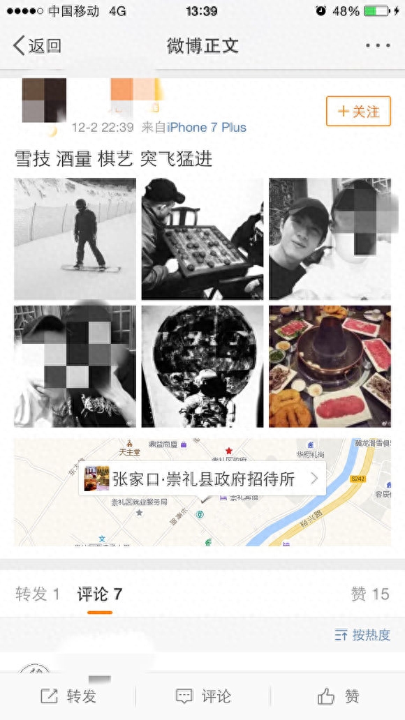 今年12月2日林更新的朋友透小新在张家口,晚上有王丽坤的图晒出来了
