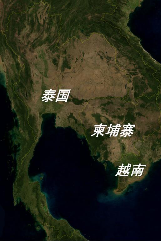 泰国、柬埔寨、越南海岸线位置示意图,中气爱标注