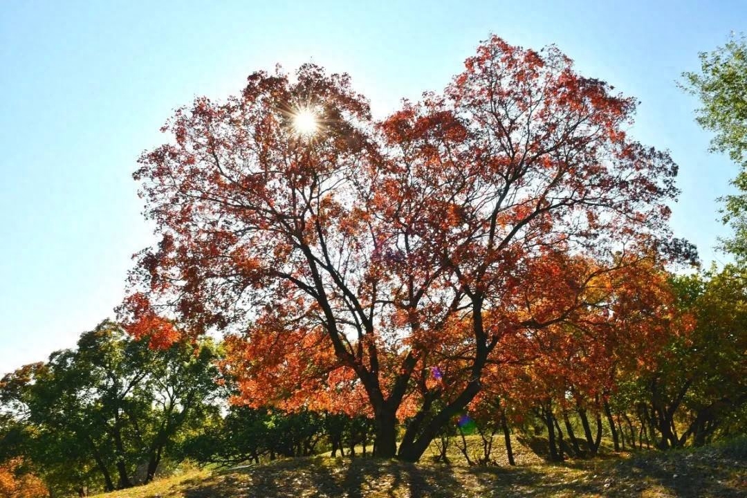 其次要提到的就是五角枫,这颗树的颜值非常的高,仅仅是它的叶子就让人浏览往返。记得在公园里工作人员用警戒线将这棵树包围起来不让游客靠近,说明它的价值非常的珍贵。稍微靠近一点就可以闻到它周边有一种特别的味道,这种味道是他独有的一种自我防御武器,可以有效防止害虫以及蚂蚁对它产生伤害。