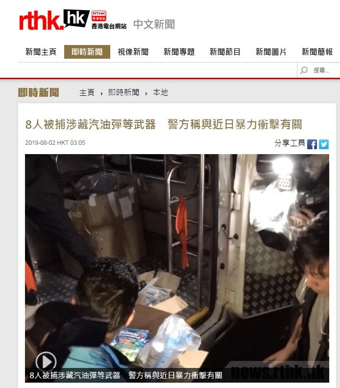 香港警方捣毁暴力分子武器库,搜出攻击性武器和物资,拘捕7男1女。