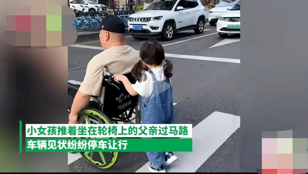 这位小女孩今年5岁。她的爸爸因意外事故导致下半身瘫痪,从此以后,小女孩就成为了爸爸的“腿”。她每天都会推着爸爸过马路,帮他完成日常的出行。虽然年纪尚小,但小女孩却展现出了超出同龄孩子的成熟和坚强。
