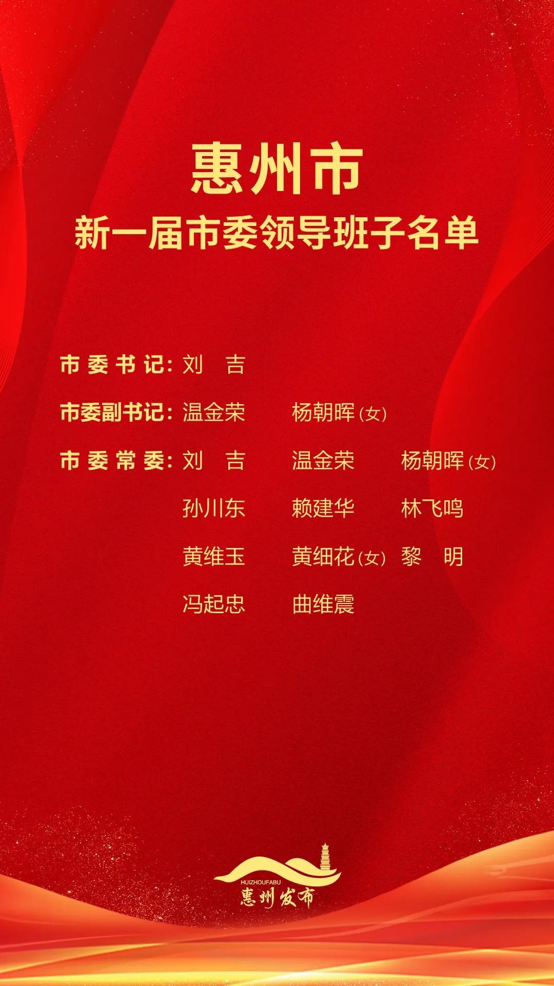 新一届惠州市委领导班子产生,刘吉当选市委书记