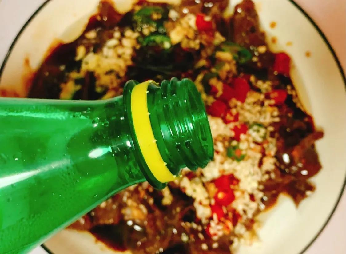 今天来分享一道牛肉神仙吃法:雪碧香菜拌牛肉。