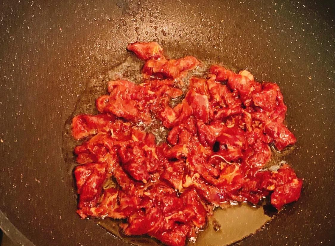 起锅加多-点油,滑熟牛肉。