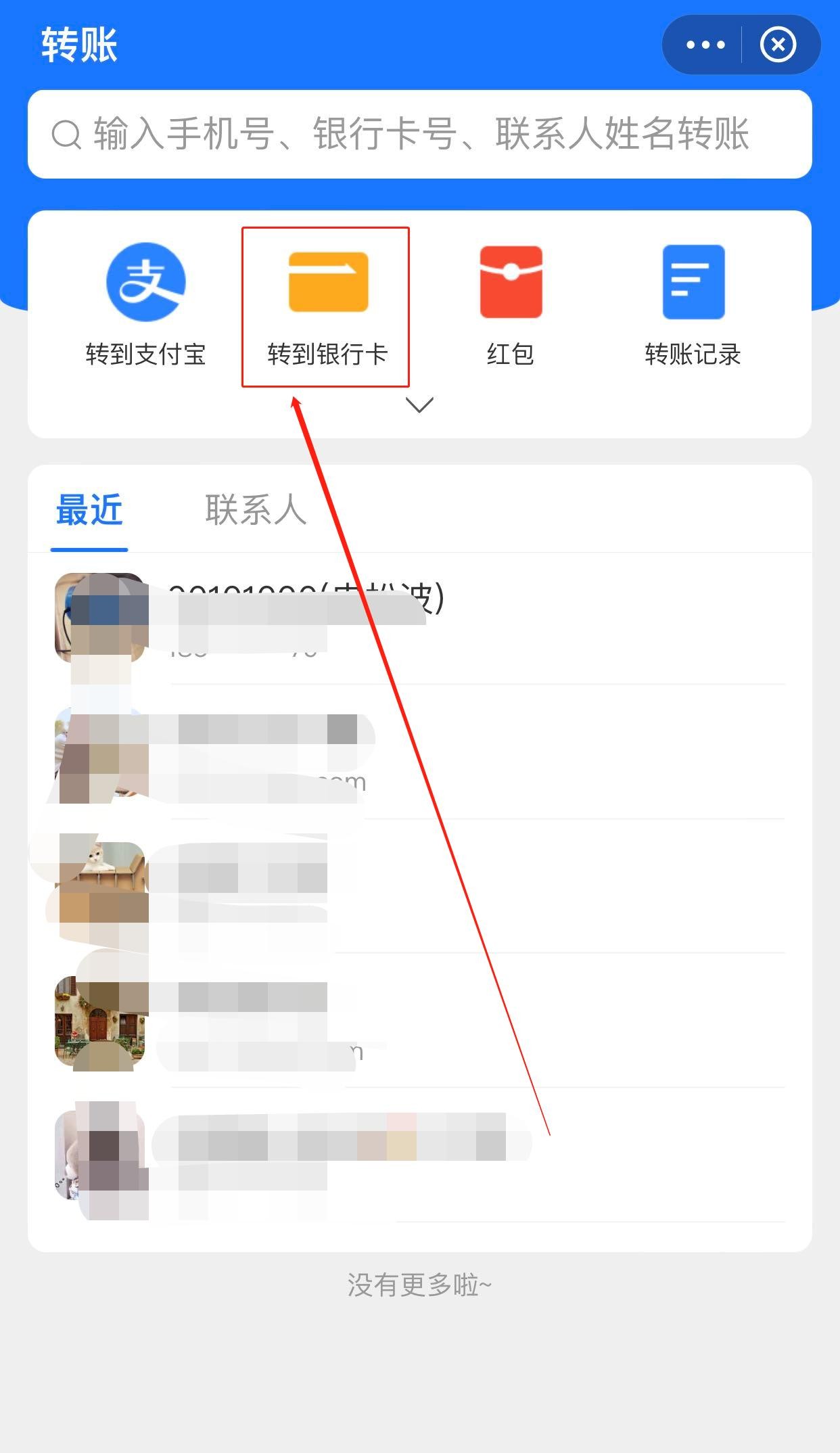完成支付宝提现后,我们只需用微信绑定此张银行卡,将钱转移到微信钱包即可。
