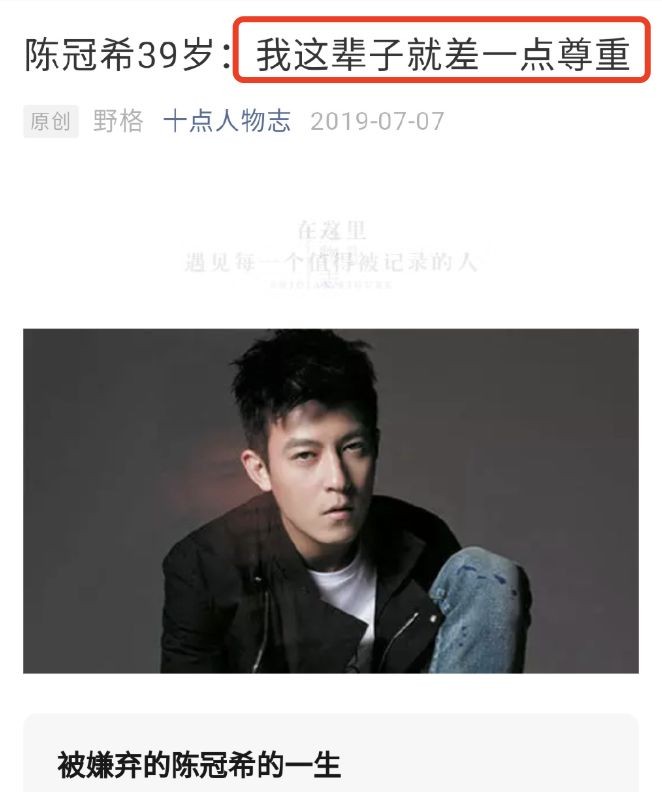陈冠希在前年接受采访时还自称这辈子就差一点尊重。