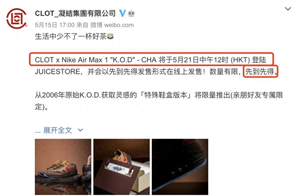 我们再去看这个微博,居然也跟着转发了CLOT的这条联名鞋重新上架的动态……