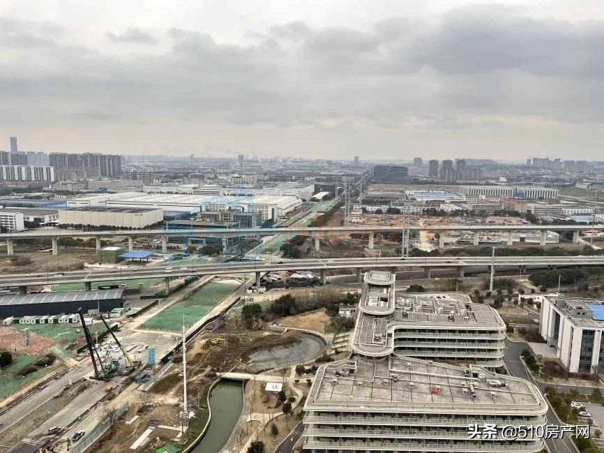 虽然图片只能展现敔山湾板块的冰山一角,不得不感慨一句,在32层的高度看景色就是不一样。四周一览无余,往南可以直接眺望到敔山湖周边,往北可以看到改造中的长山大道、芙蓉大道、南沿江高铁,还有更远处的山观一带……