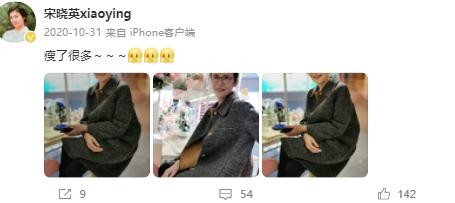 2020年10月31日,宋晓英在社交软件上发了自己几张照片,并配文称“瘦了很多”。