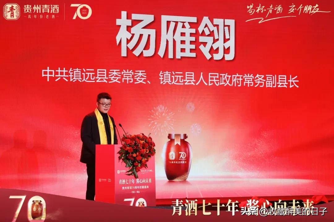 镇远县委常委、常务副县长杨雁翎代表县委、县政府向青酒致以诚挚祝贺,他说:近年来,贵州青酒顺应市场变化,不断加大技术创新和品牌建设力度,提升产品质量、生产效率和市场竞争力。希望贵州青酒再创新的辉煌,为镇远高质量发展作出更大贡献。
