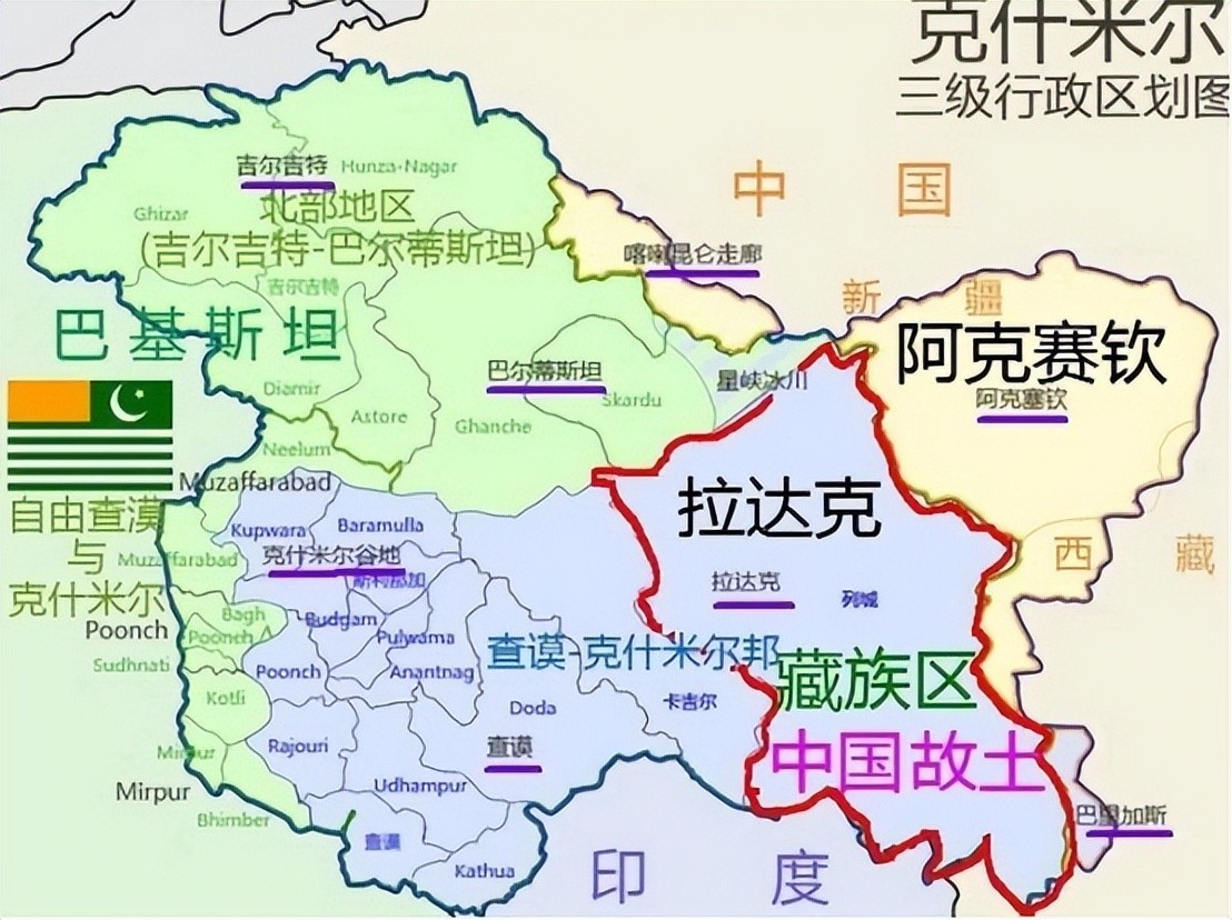 期间,英国人特意在我国西藏边境一带画了一条界限,将拉达克划入了克什米尔的版图。