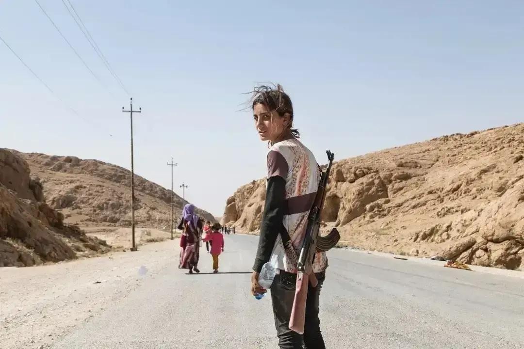 16.少女背着枪回望着镜头,表现了战争的残酷,这个世界怎么了?