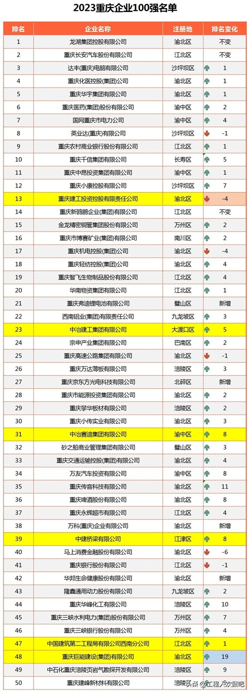 2023重庆企业100强丨13家建筑施工企业,你都熟悉吗?