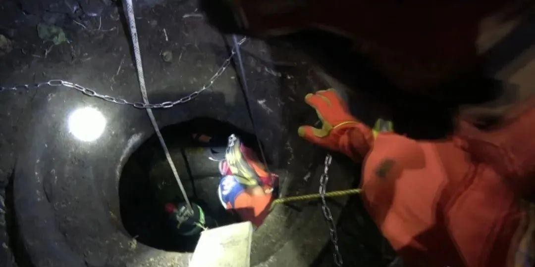 情况危急,消防救援人员迅速打开氧气瓶放入粪池中进行送风,一名消防员背上空气呼吸器,进入化粪池室内抢救被困男子,地上救援人员利用三脚架协助救助。约40分钟后,男子被成功救出,但经现场医护人员确认,此时男子已无生命迹象。