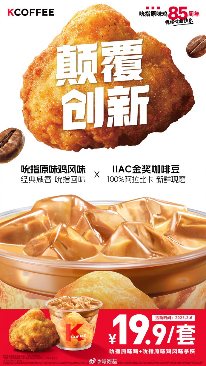 但是这次85周年新品,让消费者无法淡定的不仅仅只是鸡蛋。就连拿铁,肯德基竟然都能做出吮指原味鸡风味。