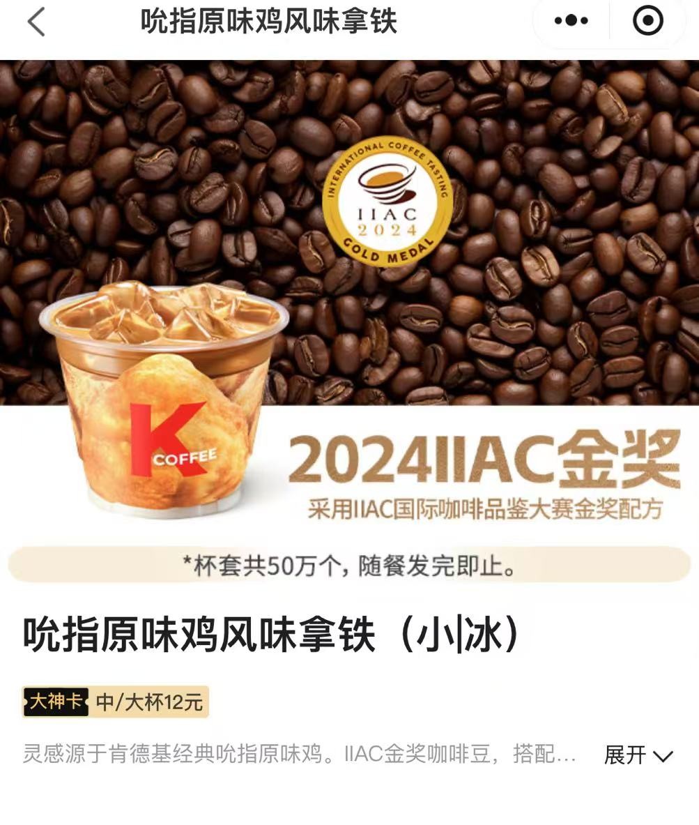 从产品介绍可以看到,为了契合吮指原味鸡的口味,饮品里加入了独特的辛香料风味。消费者在尝试后道出残忍真相,兑水咖啡里面加了藤椒粉,居然是辣的?!差点被巅峰性的创新产品送走。