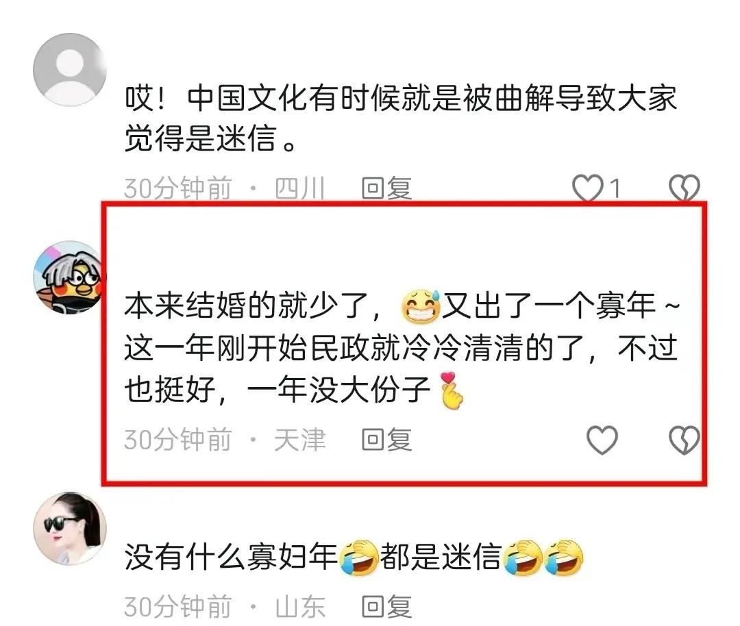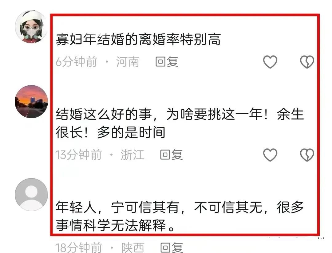 网友:“寡妇年”不宜结婚!民政部:封建迷信!评论区网友炸了…